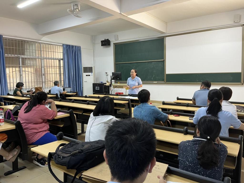 7月19日上午,我院于综合楼203召开学院例会,进行教学工作合格评估动员以及暑假前学院工作部署安排。副院长李美珍主持会议,院长谢林林、党总支书记彭康煜、副院长倪江崴及全体教职工参会。