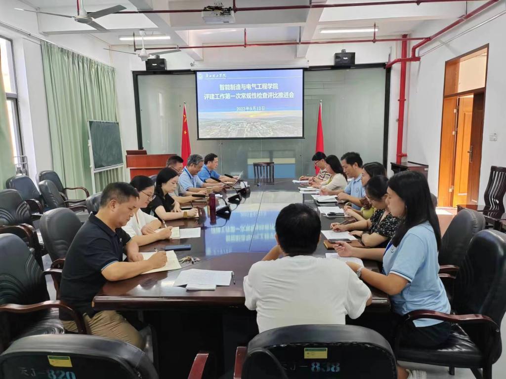 9月12日上午,智能制造与电气工程学院评建工作小组在工程楼211会议室召开评建工作第一次常规检查评比推进会。会议由李玉忠院长主持,参会人员有学院领导班子成员、系主任、实验中心主任、办公室主任、评估专员、教务员、宣传干事。