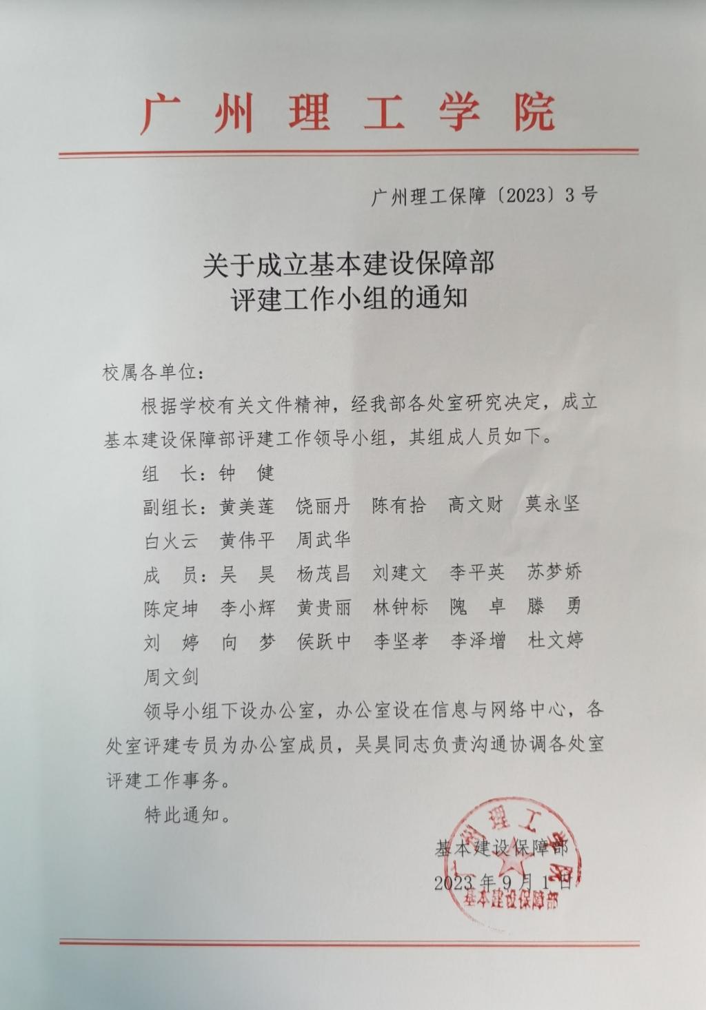 关于成立基本建设保障部 评建工作小组的通知