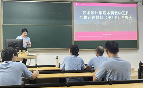 (陈广湛)9月14日上午,艺术设计学院在综合楼401教室召开艺术设计学院本科教学工作合格评估材料(第2次)自查会。会议由艺术设计学院尚华院长主持,副书记颜冬果、评估专员赖家恩、陈广湛、窦强参加会议。