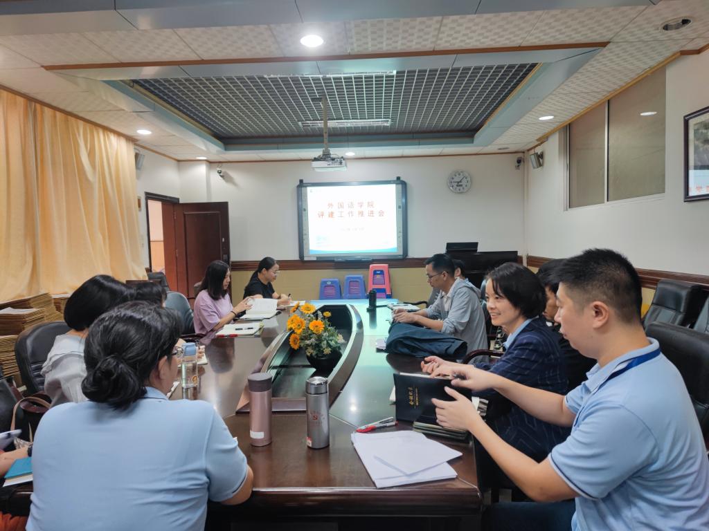 (刘青)为进一步推进本科教学工作合格评估第二次常规性检查的具体工作事宜,积极商定并落实学院近期的各项教学管理工作等,2023年10月16日上午9:00,外国语学院在综合楼322召开了第二次评建工作推进会议。外国语学院院长、书记、教学副院长、田祥斌教授、各系主任、评建专员及相关办公室人员参加了本次会议。