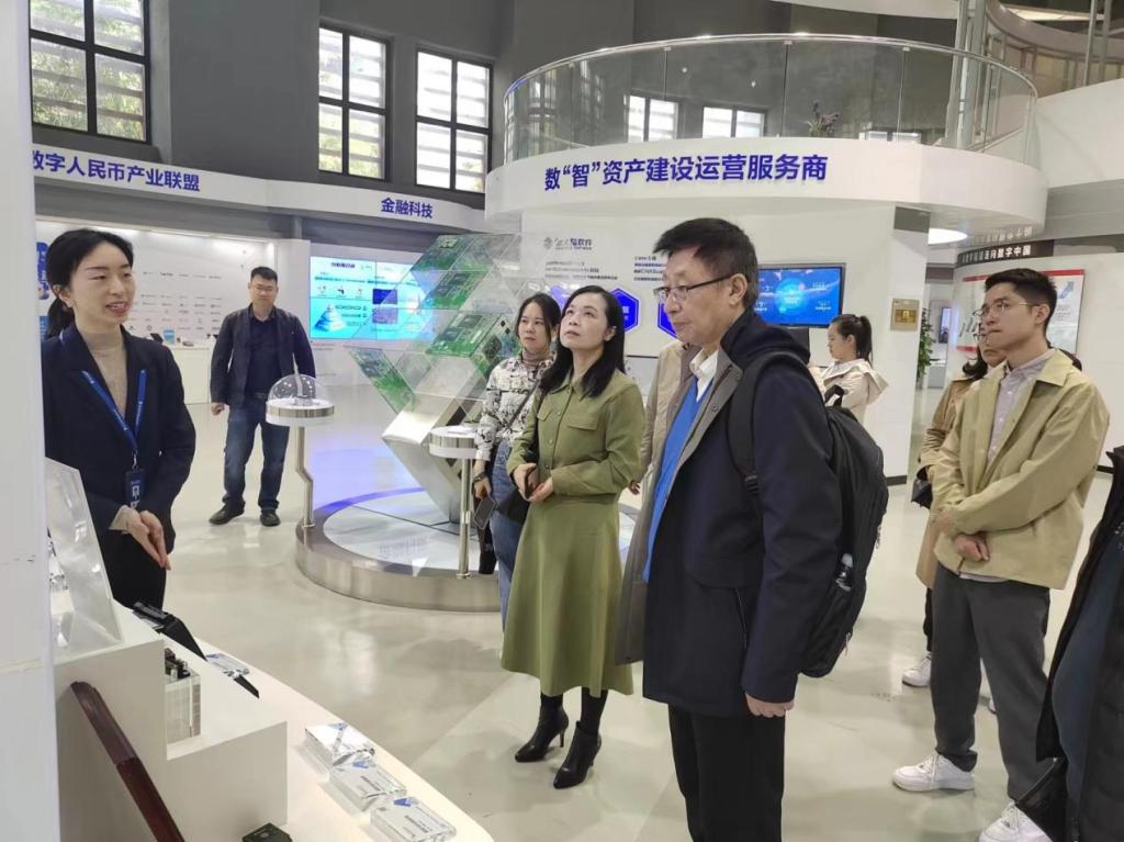 新大陆科技集团广东公司销售经理邵科亲自携手接待人员,引领交流团参观了新大陆科技集团创新成果展厅。在展厅中,他们详细介绍了新大陆科技集团自成立以来的发展历程,全面展示了公司在数字技术、二维码芯片技术、物联网、大数据、人工智能领域的前沿技术,尤其是以数字身份和数字人民币为核心的创新成果,以及在全球领先的支付技术方面的杰出成就。这些科技领域的系列成就充分体现了新大陆科技集团在科技赋能跨境电商产业发展方面的引领地位。