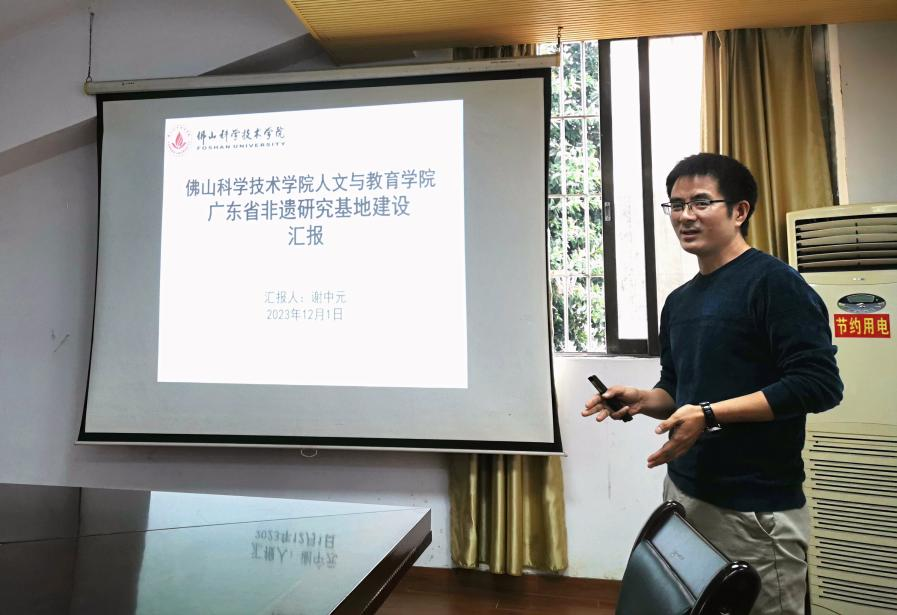 会议由佛山科学技术学院人文与教育学院副院长莫运平教授主持。在会议开始时,他首先向大家介绍了双方参会人员。接着,佛山科学技术学院人文与教育学院院长刘永峰教授致欢迎辞,他介绍了佛山科学技术学院人文与教育学院的发展历程、现状规划以及特色的岭南非遗文化研究,并表示,本次交流会为两所学院提供了一个宝贵的学术交流机会,有助于加强双方之间的合作与共同发展。