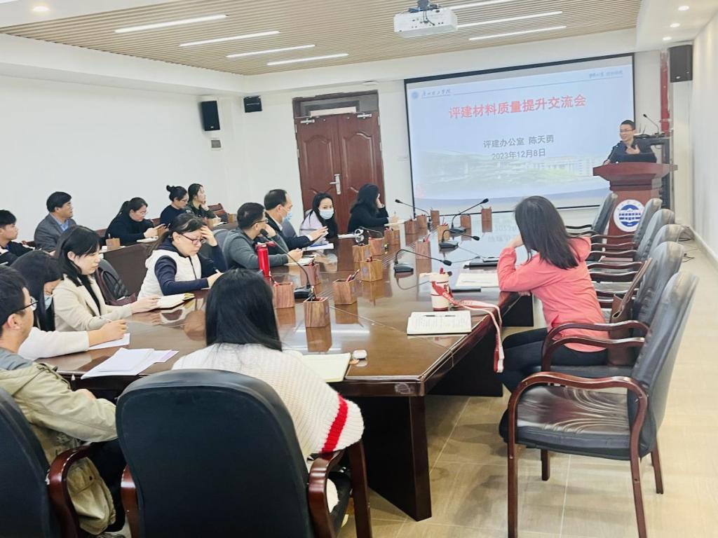 (黄丽芳)12月8日下午,学校评建办公室在行政楼816会议室组织召开“评建材料质量提升交流会”,旨在提高公文行文规范和材料汇编水平。本次会议邀请了学校办公室黄菲青主任和评建办公室陈天勇副主任作分享,各二级单位评建专员代表近40人参会。