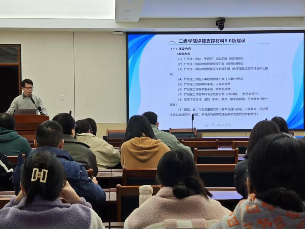 质评中心副主任陈英征对二级学院评建支撑材料5.0版的建设要求作了详细解读,并就材料的规范性、时效性与针对性做了强调,明确了相关的工作要求。此外,他明确了2025年第一次常规检查的时间、工作安排、评分细则和相关工作要求,要求各单位做好充足准备,迎接检查。