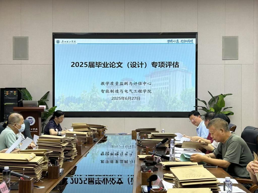 2025年6月27日,威廉希尔williamhill中文组织专家组赴智能制造与电气工程学院,于工程楼一楼会议室开展了2025届毕业论文(设计)质量专项评估工作。本次评估由理工科6位校级督导与学院10位学院评估专家组成五个小组,共抽查575篇毕业论文,抽查数量为总篇数的50.17%,全覆盖检查所有指导教师164名。