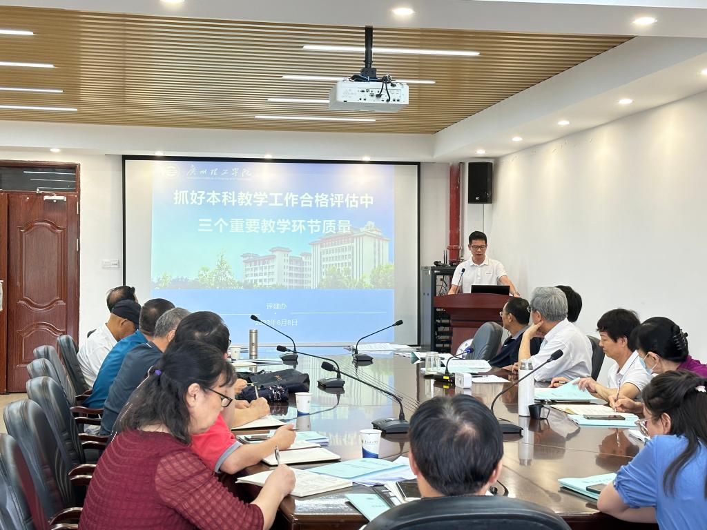 胡社军强调了本科教学工作合格评估对学校发展的重大意义。他要求,各单位以求真务实的态度审视本单位的工作,对标完善,积极做好迎接本科教学工作合格评估各项工作;要尽快进入“战时”工作状态,加快评建工作的推进速度;全校上下要齐心协力,以评促建,确保合格评估顺利通过。