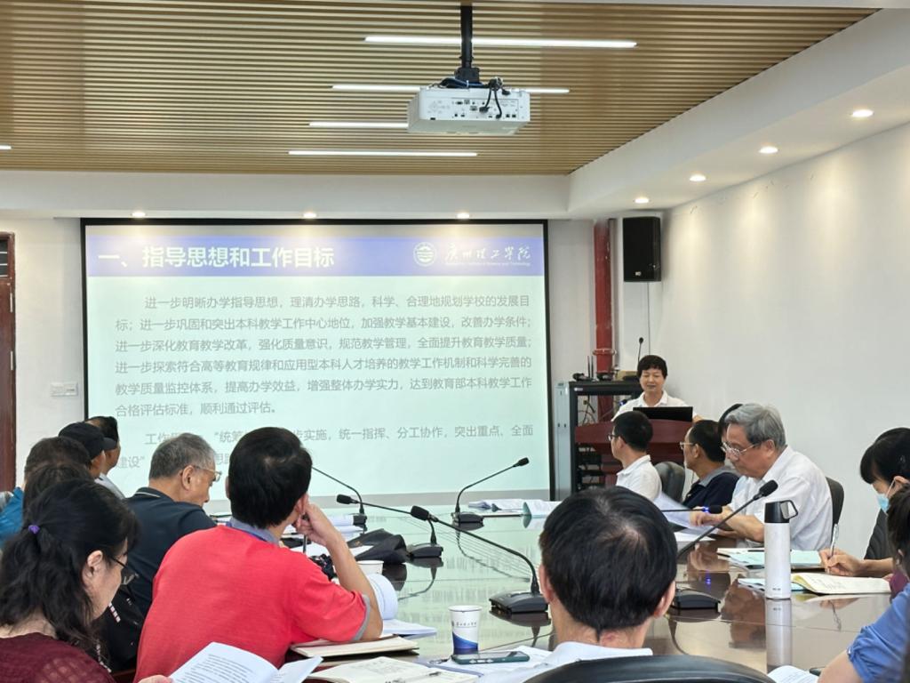 张世梅宣读了《广州理工学院本科教学工作合格评估实施方案》。随后,她对我校本科教学工作合格评估作了具体部署,重点布置了近期教学评估的工作任务:一是要认真研读《本科教学工作合格评估知识手册》,学深学透学活;二是要调研同类院校,学习借鉴已通过合格评估的院校的宝贵经验;三是要求各部门制定细则,精准施策;四是层层动员,全员参与,责任到人;五是坚持标准,不折不扣,高质量高起点高标准制修定各项规章制度;六是建好网站,加大宣传,形成合力,形成围绕本科教学工作合格评估的强大合力和共同意志。